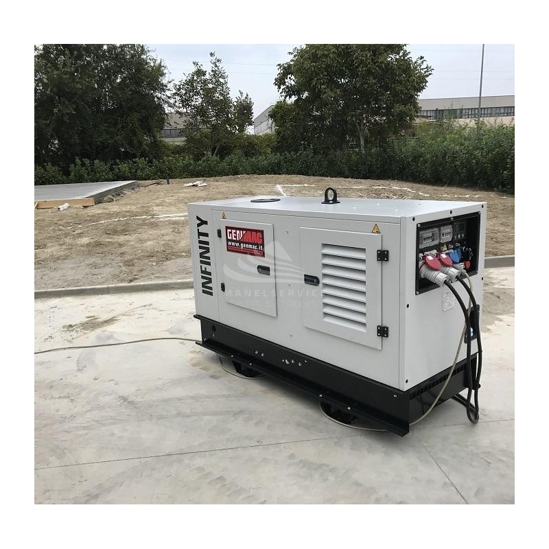Il generatore GENMAC Infinity-Rent G10PS-M5 trifase è dotato di un motore Perkins alimentato a diesel capace di erogare una potenza di 10,0KVA con regolatore di tensione AVR.