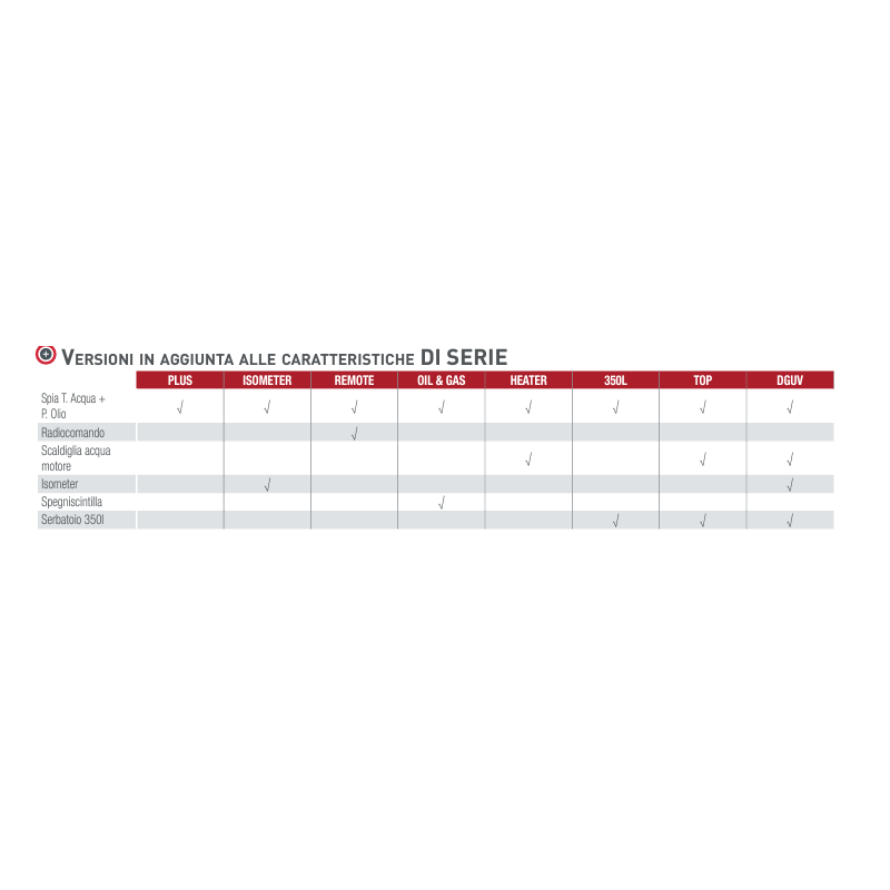 MOSA GE10YSX Gruppo elettrogeno Oltre alla versione Standard di seguito elencate: