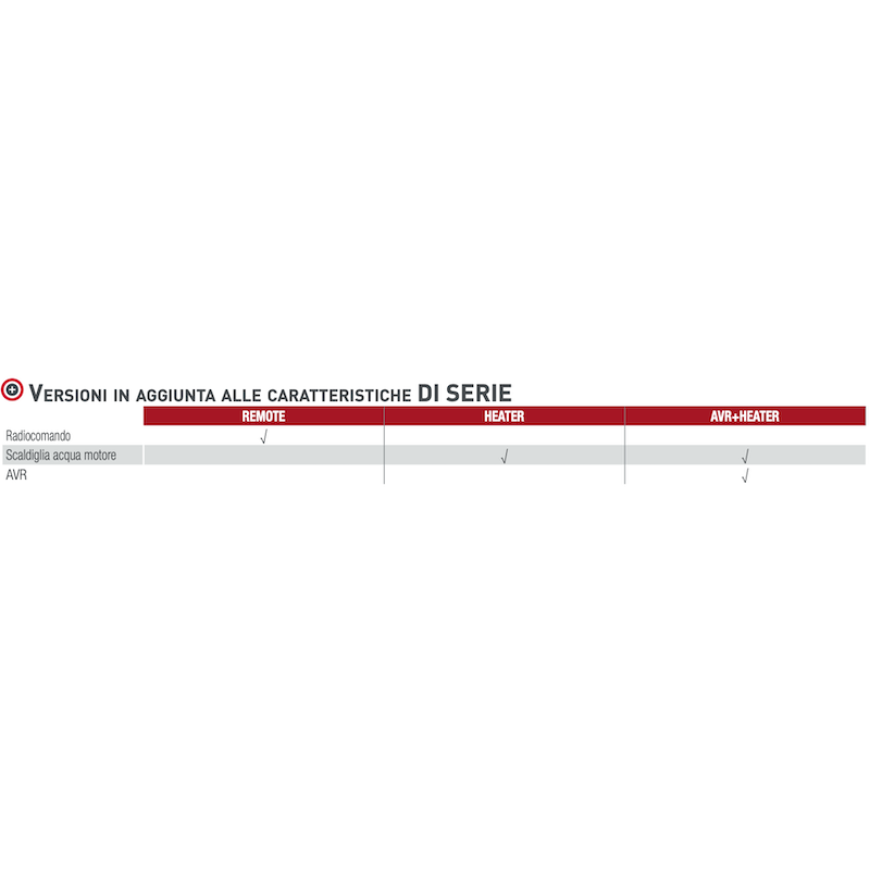 Potenza monofase Stand-By (LTP) CON AVR: 7.5 kVA (6 kW) 230V /32.6A