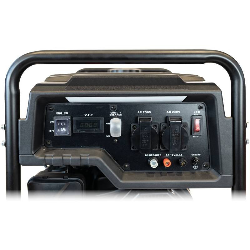 Il generatore è dotato di un quadro elettrico frontale composto da 2 presa Schuko 230V e 1 presa 12 Vdc 8A, protezione da sovraccarico e Oil Allert. Il generatore garantisce un funzionamento efficiente e silenzioso grazie al motore Motore benzina che permette di erogare una potenza massima di 6 KW.