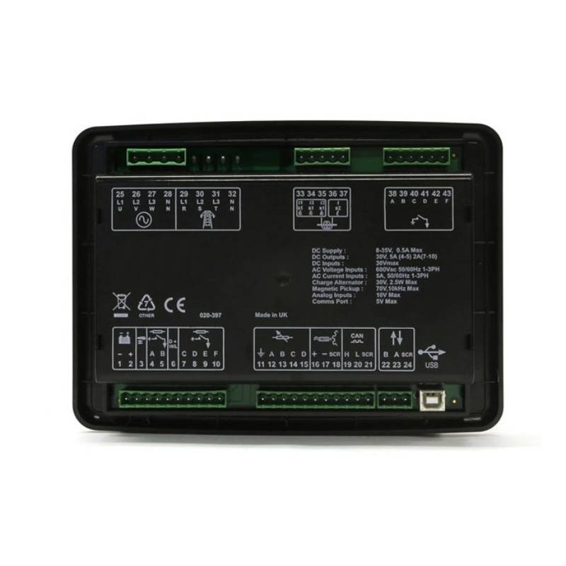 l TECNOGEN MI12TC è dotato di Modulo di controllo DSE6110 che monitora velocità, frequenza, tensione, corrente, pressione dell'olio, temperatura del refrigerante e livello del carburante, i moduli visualizzano gli avvisi, spegnimento e lo stato del motore. Tutte le informazioni sono chiare e di facile lettura sullo schermo LCD retroilluminato retroilluminato. Il modulo offre una serie di ingressi, uscite e protezioni del motore, in modo che il sistema possa adattarsi facilmente a un'ampia gamma di di applicazioni.