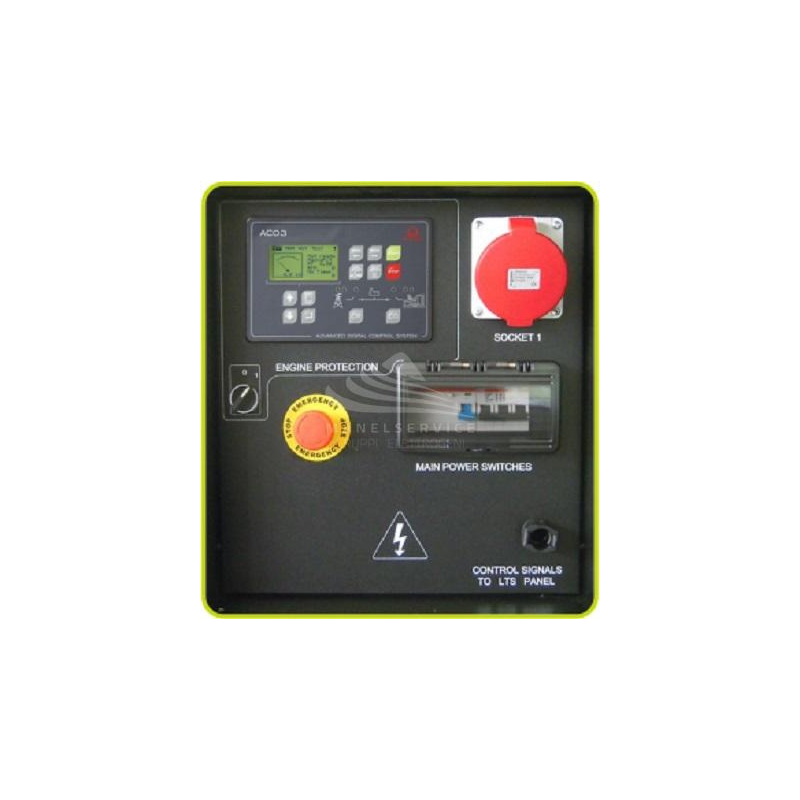 Pannello integrato e connesso al generatore, con modulo di controllo a microprocessore che raccoglie tutti i circuiti elettronici di comando, controllo e segnalazione. Morsettiera comando diretto della commutazione (ACP)