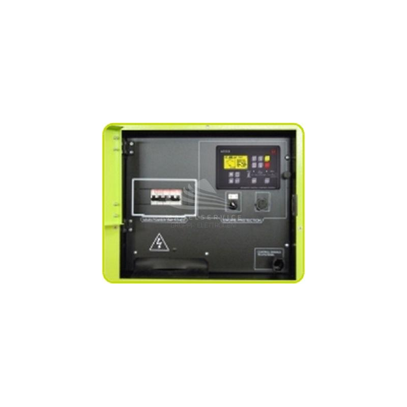 Pannello integrato e connesso al generatore, con modulo di controllo a microprocessore che raccoglie tutti i circuiti elettronici di comando, controllo e segnalazione. Morsettiera comando diretto della commutazione (ACP)