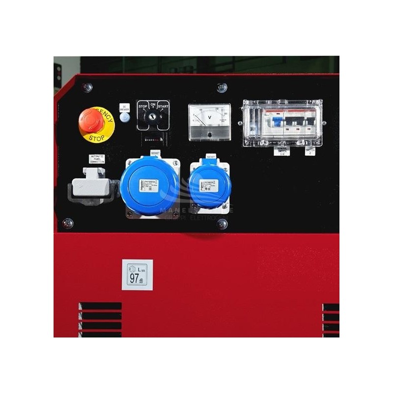Il gruppo elettrogeno GENSET MG 10000 S-R è compatto e di semplice impiego, dotato di cofanatura che abbassa le emissioni acustiche e lo rende supersilenziato.