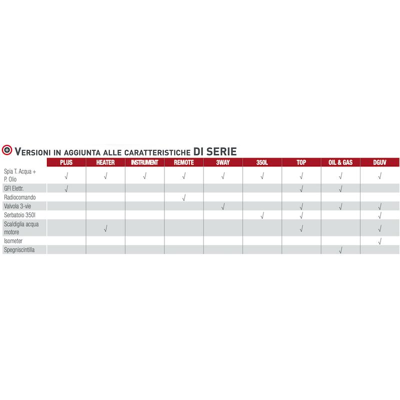 Serbatoio da 350 litri: Generatore aumenta l'autonomia in accensione accensione di oltre 100 ore circa.