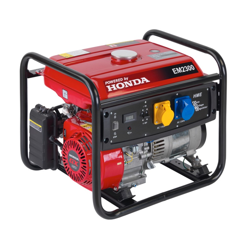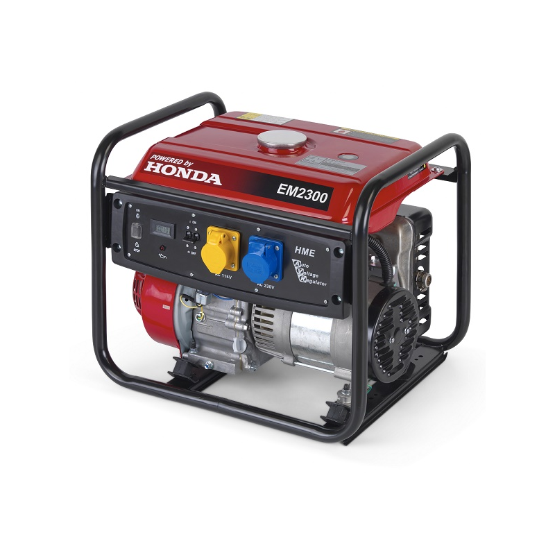 HONDA EM2300 è un generatore a benzina monofase con Motore 4 Tempi capace di erogare una potenza di 2,87KVA 2,3KW. HONDA EM2300 rappresenta una novità molto interessante per Privati e Professionisti che, oltre a cercare un prodotto di alta qualità, vogliono una macchina che garantisca prestazioni elevate, massima qualità di erogazione di energia e grande autonomia di lavoro.