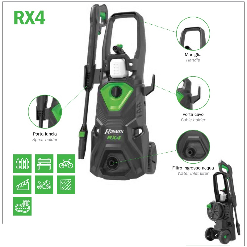 RIBIMEX PRNHP04 Idropulitrice RX4 2200W 480LT: Potenza e precisione per una pulizia impeccabile