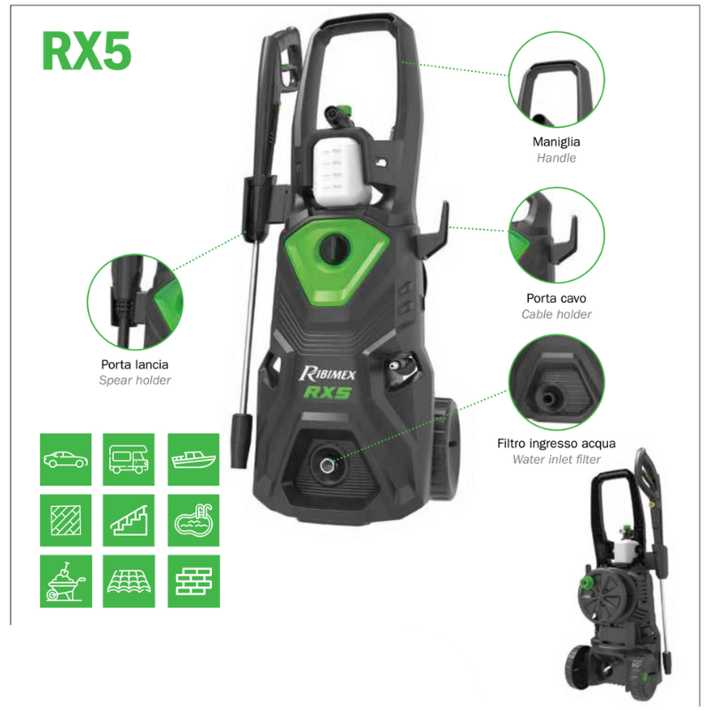L'idropulitrice RIBIMEX PRNHP05 RX5 è uno strumento indispensabile per chi cerca prestazioni elevate e versatilità nella pulizia.