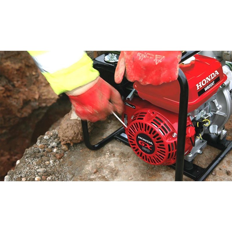 HONDA WB20XT è una Motopompa motore Benzina GX120 StageV, con una portata massima di 37 m3/h e passsaggio di detriti massimo di 6mm di diametro.