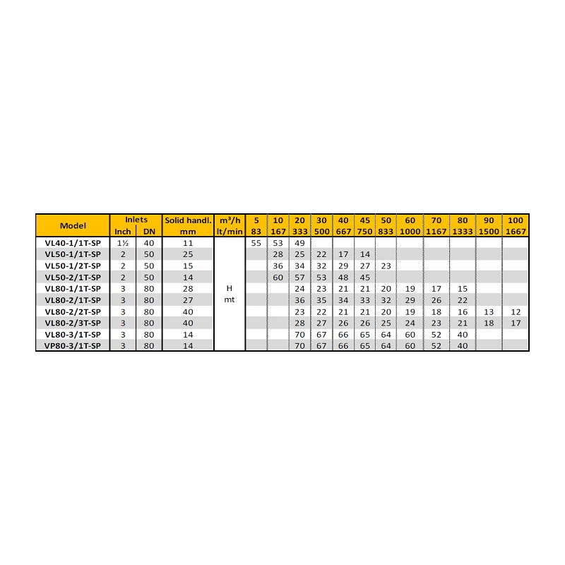 Nelle immagini tabella con le portate e la prevalenza.