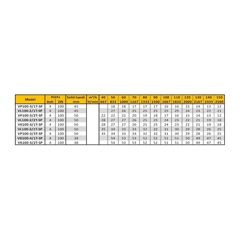 Motopompa autoadescante serie V da 31 KW con diametro 4'' per acque cariche. Nelle immagini tabella con le portate e la prevalenza.