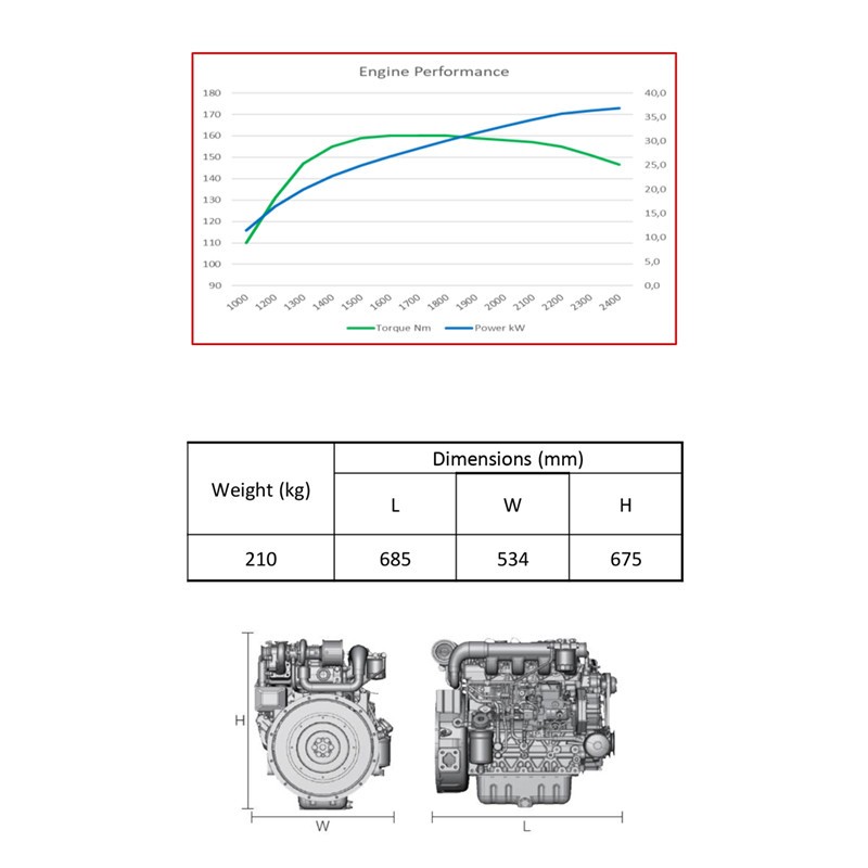 Potenza netta: 36,8 kW (49 HP) / 2400 rpm
