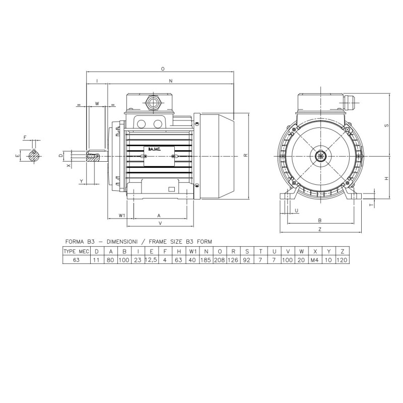 CARATTERISTICHE TECNICHE MOTORE ELETTRICO BA.M.E. MEC63 0,18KW
