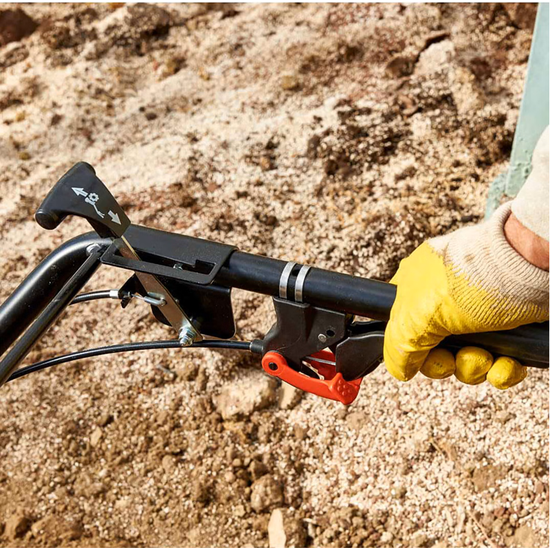 La qualità della finitura è sorprendente, grazie al motore OHC a 4 tempi, al gruppo trasmissione e alla robusta frizione che dirigono la potenza in profondità, garantendo un risultato impeccabile ogni volta che la utilizzate. La trasmissione offre una trazione ottimale e potente, consentendovi di regolare l'avanzamento rispetto alle prestazioni della fresa, per un controllo totale durante il lavoro.