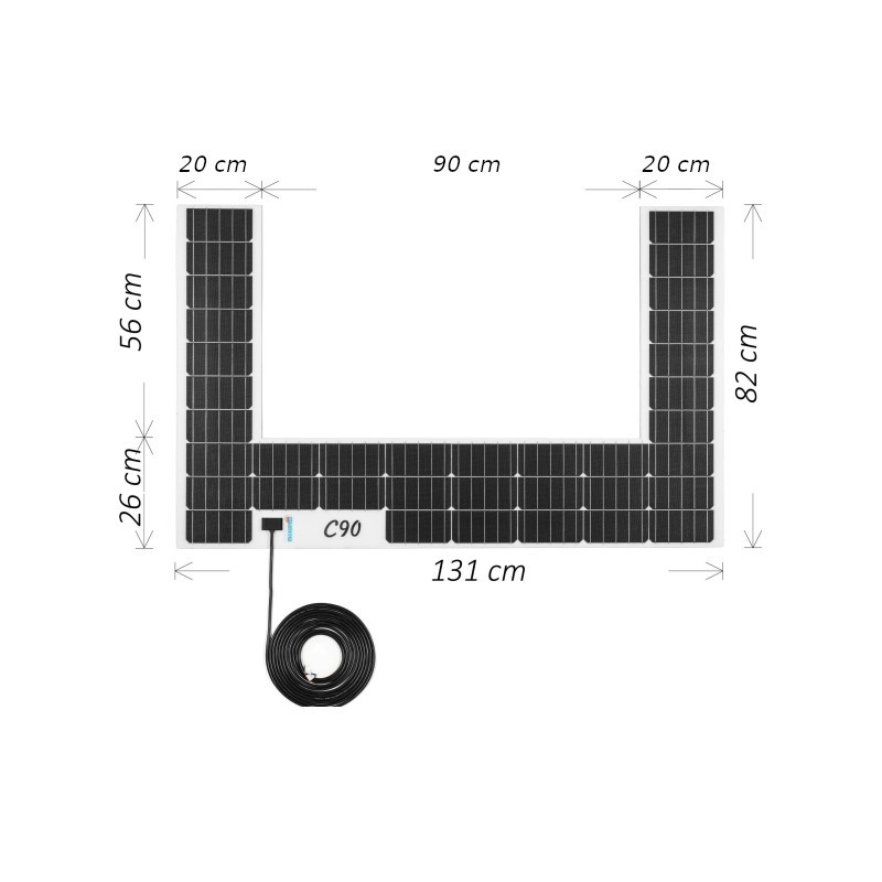 Con potenza massima di 90W, il nuovo modulo MOSCATELLI E-VAN C90 proposto nelle dimensioni 130X82 CM risolve molti inconvenienti che affliggono solitamente i pannelli solari a montaggio fisso installati sui veicoli ricreazionali, in particolare il problema dell’ingombro e quello, importantissimo su un mezzo di trasporto, del peso.