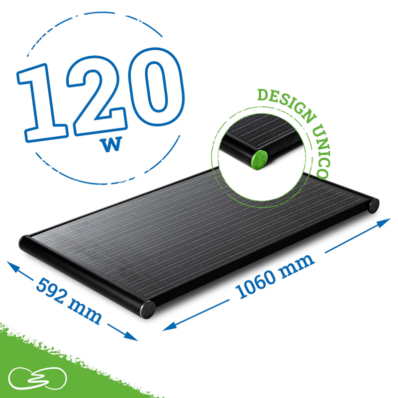 Il MOSCATELLI 120W BLACK BOOST Pannello Solare è progettato per offrire una soluzione energetica efficiente e affidabile durante ogni viaggio in camper, van o mini van.