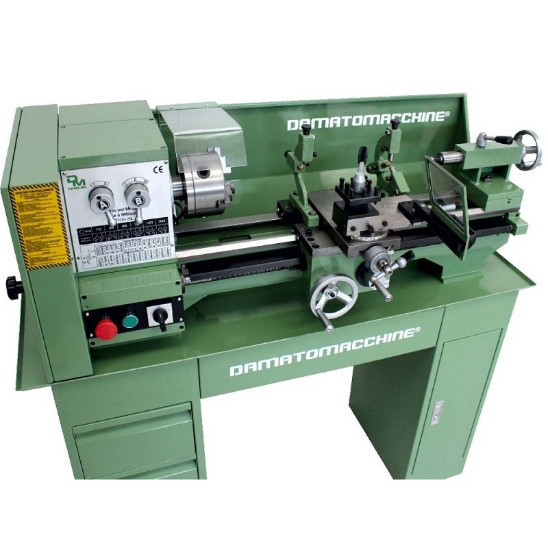 Tornio per metalli destinato al mercato degli amanti del fai da te o dei piccoli artigiani, DAMATOMACCHINE NEWTON 20 plus dispone di una distanza tra le punte di 560 mm e di un massimo diametro a tornire di 220 mm. Il tornio DAMATOMACCHINE NEWTON 20 plus è alimentato da un motore monofase da 750W. Il nuovo modello dispone di un nuovo Carter Silent che, in abbinamento con i cuscinetti SKF, rende la macchina ancora più silenziosa e funzionale.