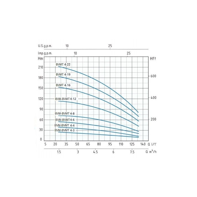 I modelli BVM 4/12 monofase o BVMT 4/12 garantiscono una pressione erogata max di 12 Bar ed una portata max di 125 Lt/min, in centro curva le macchine raggiungono i 9 Bar con 80 LPM (corrispondente a 4800 Lt/h).