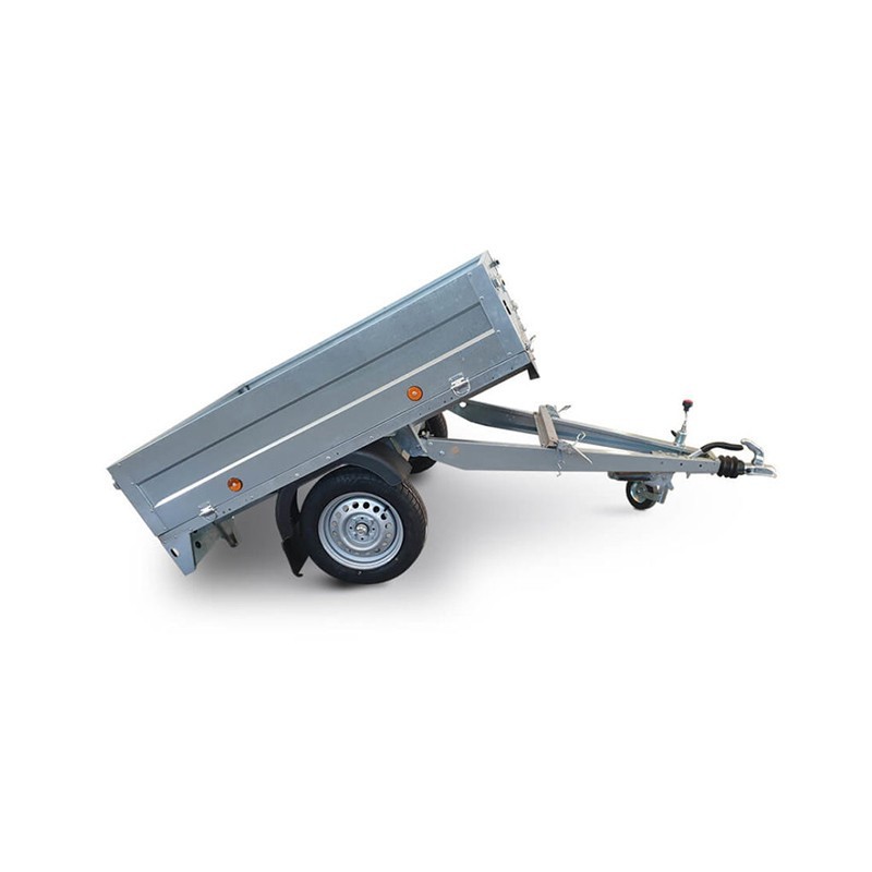 Rimorchio basculate, Pianale in legno marino fenolico antiscivolo. Sponde apribili che aumentano il volume di carico fino ad un massimo di 750 kg di carico