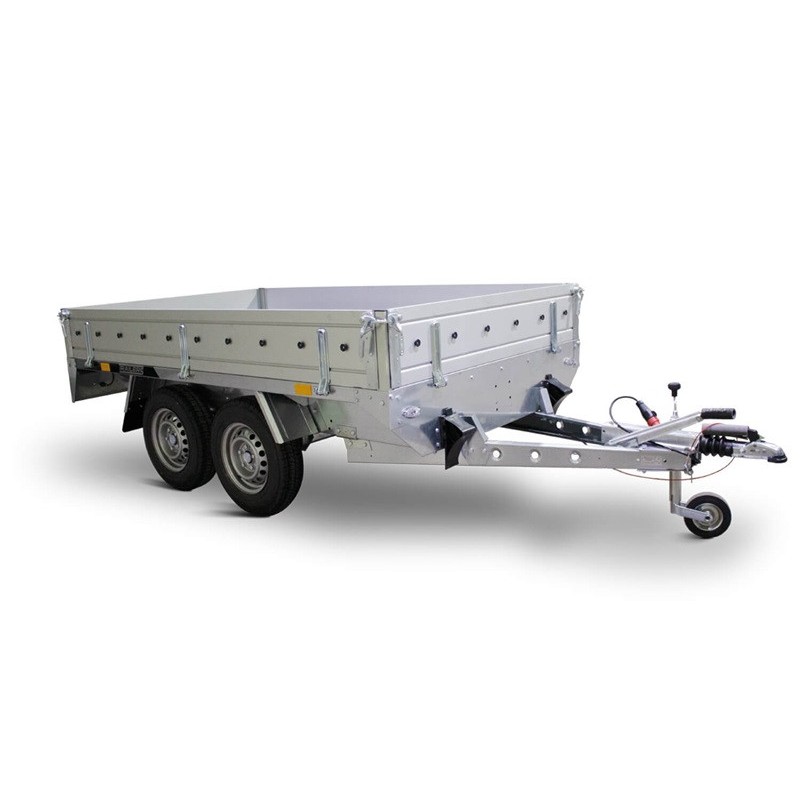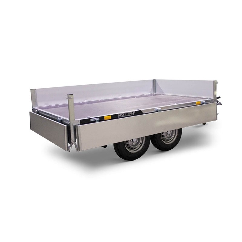 RIMORCHIO COUNTRY 4 è un rimorchio basculate completo di pianale in legno marino fenolico antiscivolo, concepito per il carico di oggetti mediamente pesanti e merci. Il rimorchio COUNTRY 4 è completo di sponde apribili che aumentano il volume di carico fino ad un massimo di 2000 kg.
