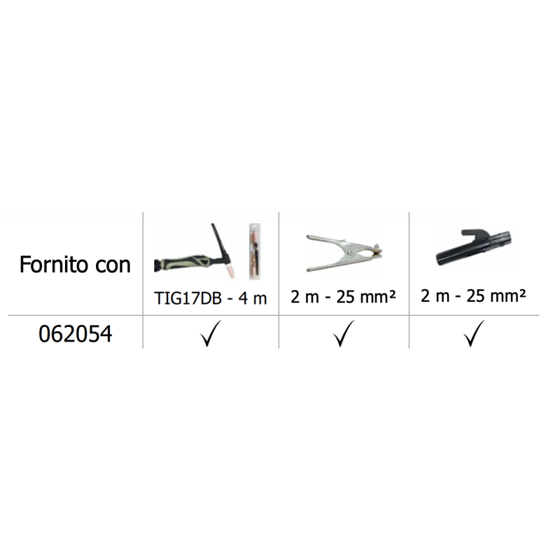 Fornito con pinza - torcia - porta elettrodo
