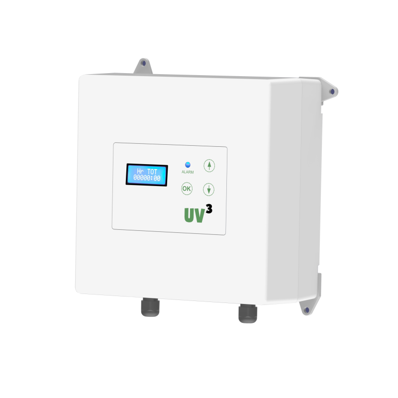 SATEPA Sterilizzatore UV UVC40D3 - Display UV CUBE è un dispositivo progettato per la disinfezione dell'acqua potabile e industriale mediante l'utilizzo di radiazioni UV-C. La sua efficacia si basa sull'emissione di raggi UV-C ad una lunghezza d'onda di 254 nm, in grado di inattivare microrganismi patogeni come batteri, virus e protozoi.