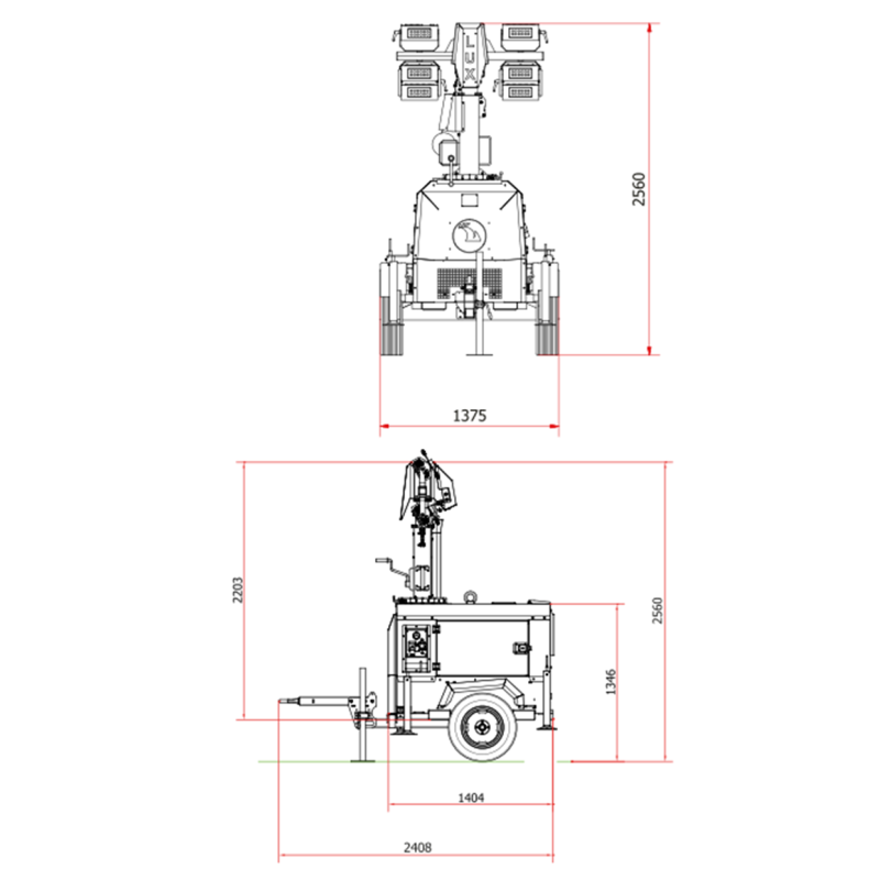 La torre faro LUXTOWER LUX M12 è composta da un gruppo elettrogeno monofase da 3,5 KVA dotato di motore Kubota Z482 alimentato a diesel a 1500 giri/min e cofanatura insonorizzante che lo rende supersilenziato.
