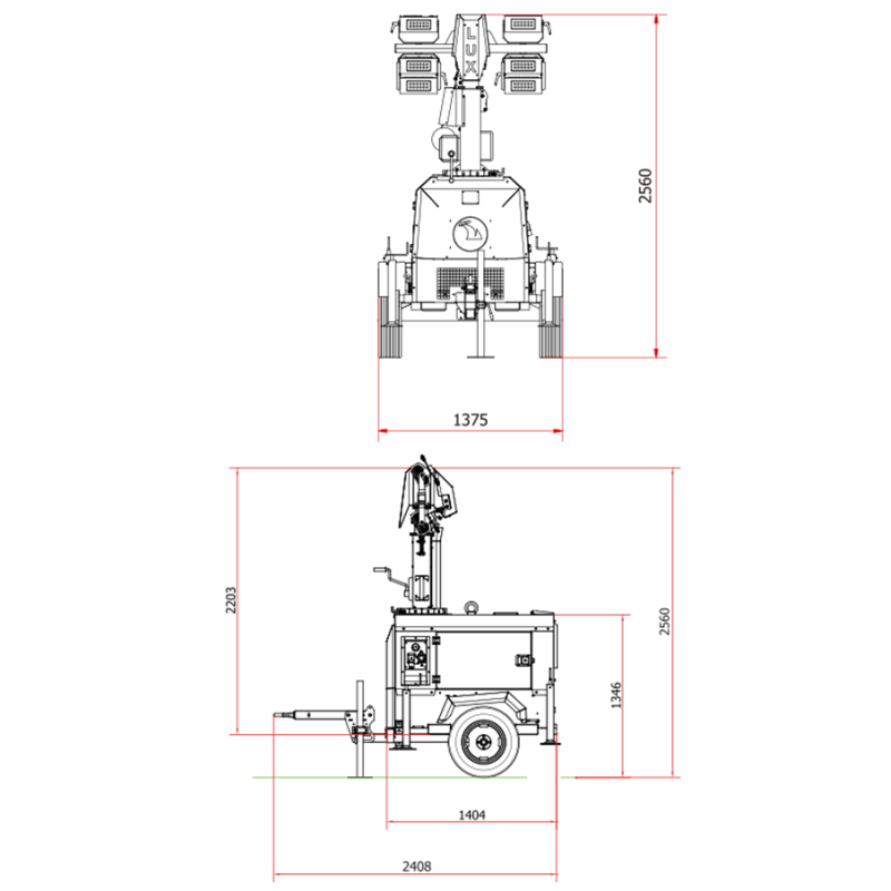 La torre faro LUXTOWER LUXM11 LED 8.5 Metri con Generatore 3.5 kVA è dotata di gruppo elettrogeno integrato con proiettori 4x300 W LED, palo telescopico verticale con sistema di sollevamento manuale e una presa ausiliaria per fornire energia a piccoli utensili.