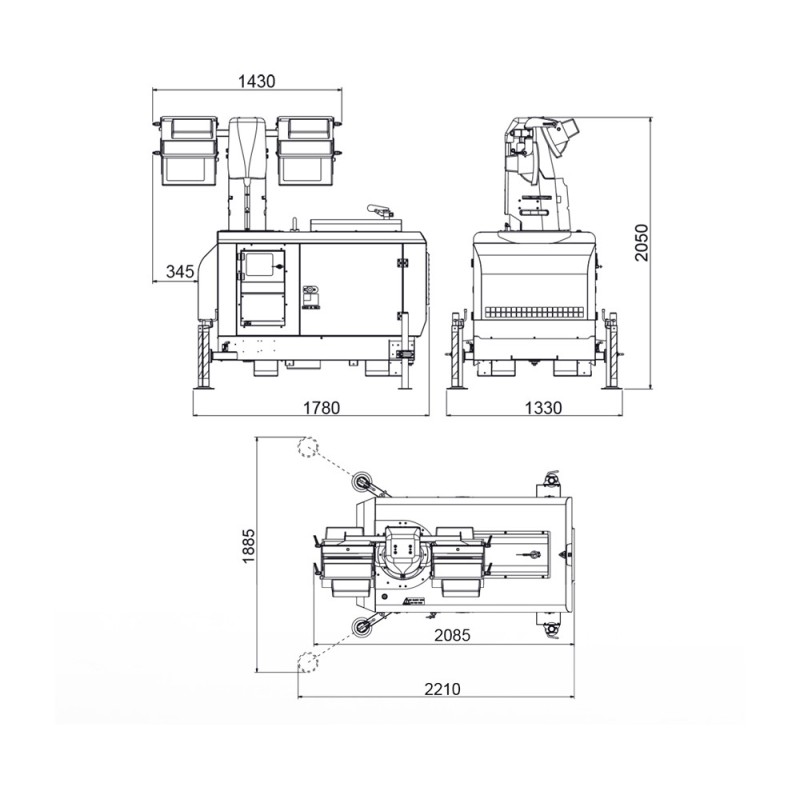 MOSA TF II9 Y L-4x350 LED è una torre faro con generatore dotato di motore Yanmar 3TNV80F Stage V Diesel, con 4 proiettori capaci di erogare una potenza luminosa di 350W ciascuno.