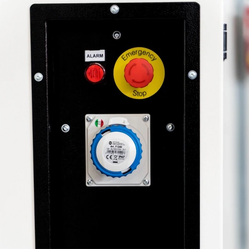 Il gruppo elettrogeno è provvisto di motorizzazione STAGEV "mobile", come previsto dal Regolamento Europeo 2016/1628. Queste nuove motorizzazioni consentono di ridurre in modo esponenziale le emissioni di particolato e ossidi di azoto erogate dal generatore nell’ambiente, e garantire una riduzione dell’impatto ambientale del 200% rispetto alle motorizzazioni standard.