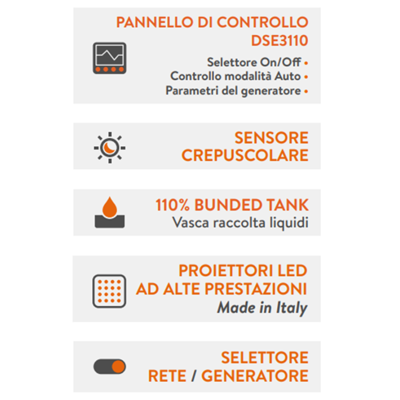 Sistema di controllo DSE3110 con selettore rete/generatore e sensore crepuscolare per un’illuminazione automatizzata