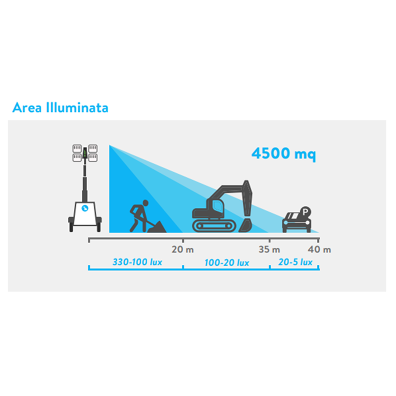 Affidati alla LUXTOWER LUX Hybrid Lithium - Torre Faro Traino Veloce 3.5kVA per un’illuminazione efficiente, ecologica e ad alte prestazioni