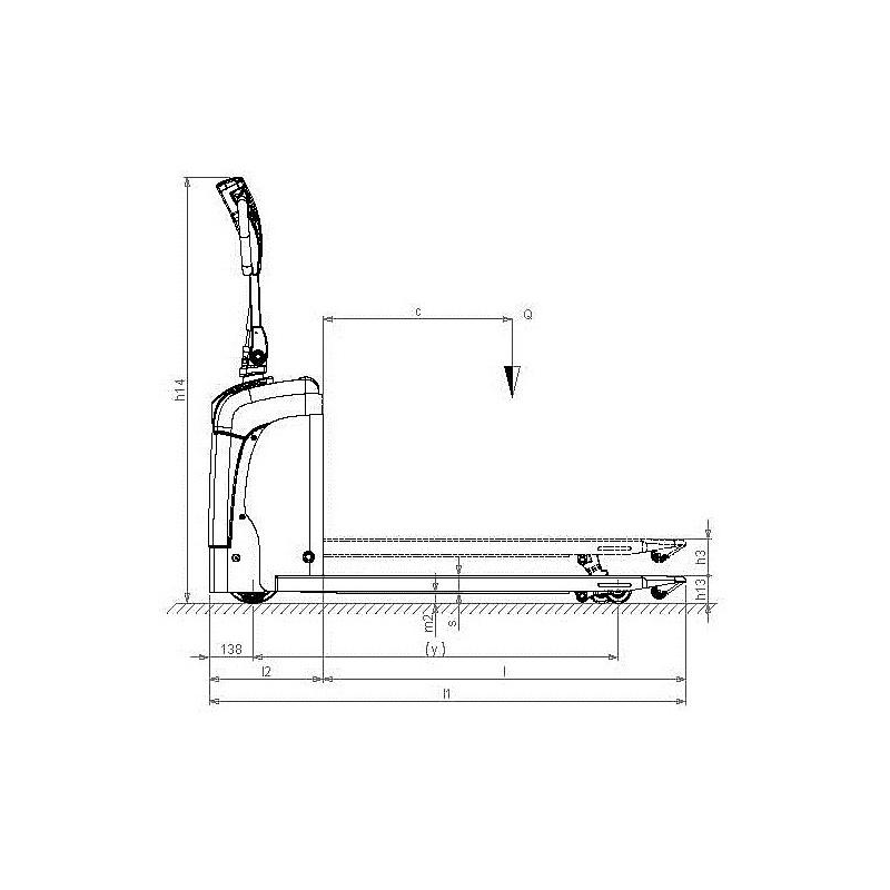 Il transpallet PRAMAC Lifter CX14 è costruito con forche da 1150x525 cm e con due ruote posteriori. Questo transpallet ha una portata di 1400 Kg con un'altezza di sollevamento di 115 mm. Il corridoio di stivaggio è di 1900 mm mentre il raggio di volta è di 1435 mm.