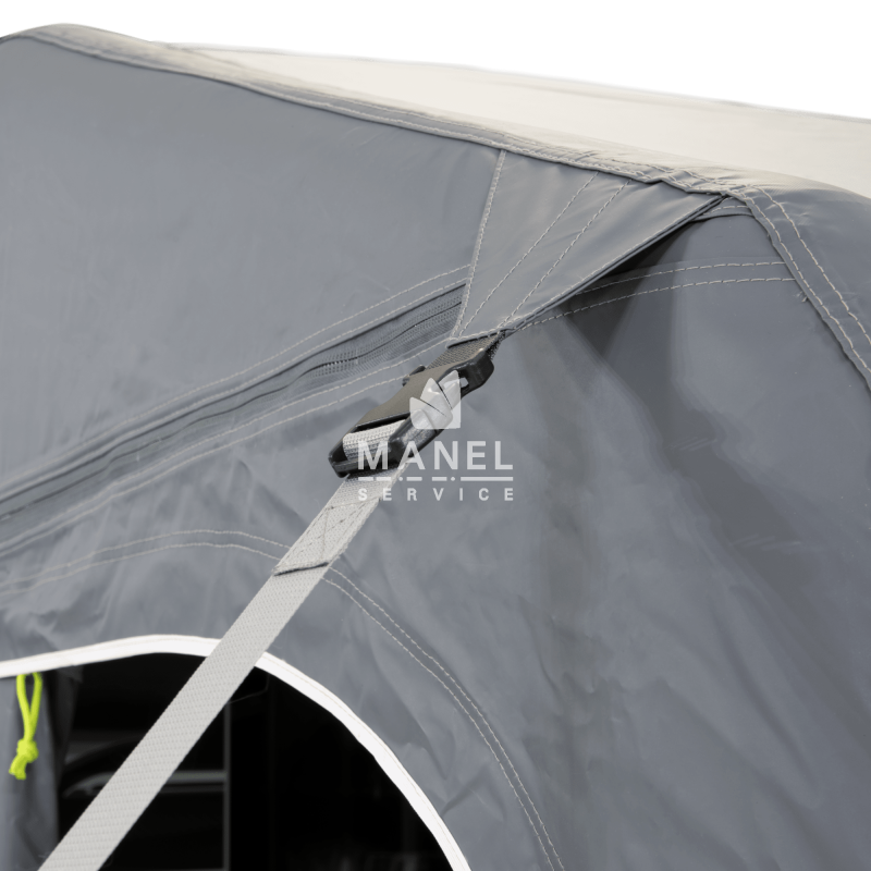 La veranda Dometic Winter Air PVC è l'incarnazione della durabilità e del comfort, offrendo una camera d'aria termoisolante che mantiene l'ambiente interno caldo e accogliente. I dettagli sono studiati per massimizzare la tua esperienza: dal doppio tetto che impedisce la formazione di condensa alla parete interna che offre privacy e protezione aggiuntiva.