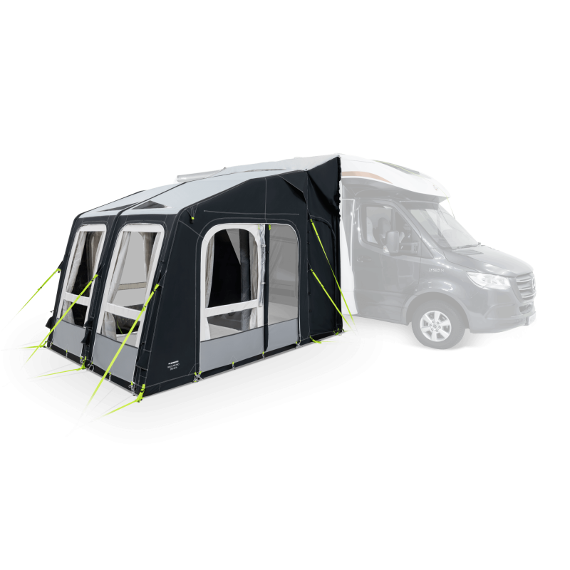 Questa linea di verande si adatta perfettamente a una vasta gamma di veicoli ricreazionali grazie alle ampiezze variabili da 2600 a 3900 mm, garantendo così spazio e protezione per ogni esigenza. Con l'innovativo sistema di gonfiaggio Single Point Inflation™, l'installazione è rapida e senza sforzo. Il materiale WeatherShield™ Pro assicura resistenza e durata nel tempo, mentre il sistema Dual-Pitch™ e il QuickPitch™ guying system migliorano la stabilità e la praticità d'uso.