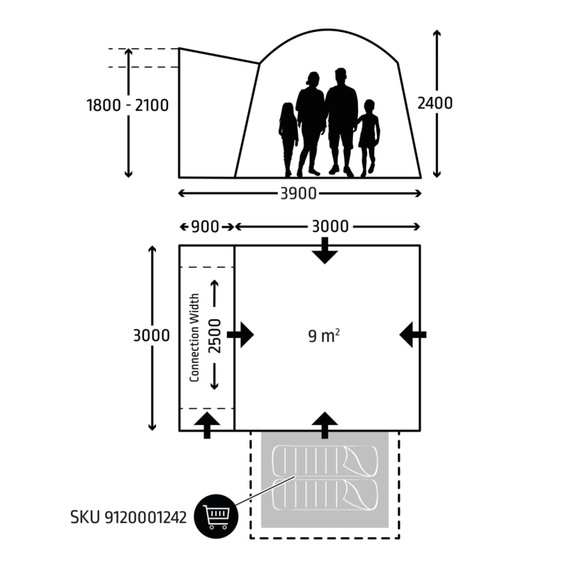 Grazie all'innovativa tecnologia Kampa Air Frame, questa veranda offre un'ampia zona giorno con pareti alte e verticali, ideale per rilassarsi, cucinare o mangiare all'aperto.