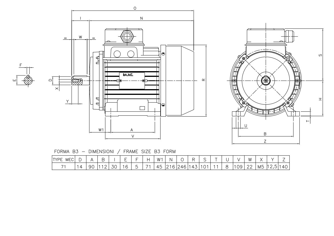 CARATTERISTICHE TECNICHE MOTORE ELETTRICO BA.M.E. MEC71 0,55KW